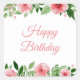 Se muestra una pequeña pegatina cuadrada de feliz cumpleaños con una encantadora impresión floral rosa.