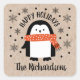 Una pegatina navideña personalizada con las palabras Felices Fiestas y un pingüino lindo con una bufanda. Ideal para disfrutar de sus dulces, regalos y tarjetas de Navidades para sus amigos y familia. Diseñado para ti por Blackberry Boulevard.