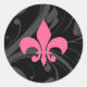 Pegatina Fleur De Lis de color rosa y negro caliente, con fondo giratorio gris negro y carbón vegetal