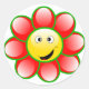 Grandes pegatinas redondos, con una flor de cara feliz roja y amarilla. Excelente como focas de pegatina de sobre, como recompensa especial para los niños, y por decoraciones en habitaciones para niños.
