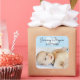Pegatinas de foto de Baby Boy personalizados Blue Heart Stripe, lindo de usar para el anuncio de nacimiento o para la ducha de bebé, notas de agradecimiento.