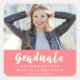 Los modernos pegatinas de fotografía de graduación de moda cuentan con un guión de brocha blanca, fondo de coral y marcadores de posición de texto y foto. ¡Los pegatinas fotográficos son perfectos para ser usados como favores de graduación, sellos para sobres y más!