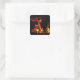 Estos pegatinas representan la energía del fuego en una estufa de leña. Las llamas naranja, dorada y amarilla aparecen como personajes de baile alegres. Están despegados por un fondo negro.
