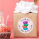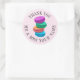 Pegatinas de galletas de macaron franceses para favores matrimoniales. Crear pegatinas y sellos personalizados para favores partidarios. Colorido dibujo acuático de galletas de macarón con diferentes sabores y colores. Ideal para panadería, pastelería o dulces. Naranja verde rosa y colores azules. Pegatinas de moda de tamaño grande y pequeño.