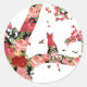 Este moderno pegatina minimalista de arte elegante tiene huellas de rosas de época en un fondo blanco. La imagen es de un gato en un árbol observando aves. Un bonito pegatina de estilo victoriano clásico.