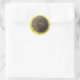 Esta hermosa hoja de pegatinas redondos presenta una detallada fotografía de primer plano de un girasol amarillo bonito. La fotografía fue tomada con fotografía macro y muestra un hermoso contraste entre los pétalos amarillo pálido y la gran cabeza de semilla central oscura de la flor.