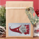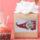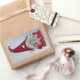 Un bonito gnomo grisáceo de invierno vestido con un traje de manto con copos de nieve y un corazón en los pegatinas de su gorra.