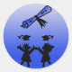 "Lo hicimos", "Graduación feliz" diseño de un chica y un niño dando a los cinco altos con un fondo de gradiente azul.