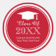 pegatinas de graduación personalizado con gorra/gorra. Elegante pegatinas redondos rojos y blancos con personalizable año 2023, etc. Icono de recorte con iniciales de nombre monogramadas de grado más fecha. Pegatinas de agradecimiento personalizados, etiqueta de favor, selladores de sobres / sellos. Tipografía de escritura elegante. diseño de moda / diseño elegante. Color del fondo del personalizable. Adecuado para la escuela secundaria, la universidad, etc. También es bueno para los fiestas de la reunión escolar.