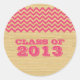 Modernos y modernos Pegatinas de graduación de Chevron Rústico con un fondo de madera de arte digital y un patrón de zigzag de rayas de chevron magenta. Este elegante diseño es fácil de personalizar con detalles de graduación. Haga clic en "Personalizar" para encontrar más opciones de personalización.