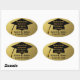 Añada fácilmente el nombre del graduado, el nombre de la escuela y el año de graduación a estos populares pegatinas, sellos para sobres y favores partidarios de oval, graduación personalizado. El elegante y rico fondo dorado gradiente con el contrastante tapón negro de graduación con diseño gráfico de tassel oro añade a la belleza y riqueza de estos pegatinas únicos. Perfecto para cualquier año de graduación para niños, adolescentes y hombres y mujeres graduados de cualquier edad.