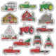 Conjunto de pegatinas de granja de Navidad de pequeño camión rojo. Con la obra de arte original "Little Red Truck" de Rick Ellinger. Perfecto para decorar tus artículos para Navidad y agregar un acento de granja rural. También es bueno para decorar tu álbum de recortes o tus tarjetas y sobres de Navidad. 14 pegatinas individuales, cada una de 2" de ancho. Incluye tractor rojo y tractor verde.