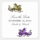 Perfectas para anunciar una boda temática de juego de fantasía elegante, estas pegatinas de Dragón para guardar fecha son únicas y divertidas para los fanáticos, y presentan un dragón dorado y un dragón púrpura de colores vibrantes. Fáciles de personalizar, simplemente añada los detalles de su boda en los campos de texto proporcionados. Haga clic en "Personalizar" para encontrar más opciones de personalización.
