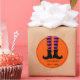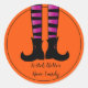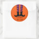 Pegatina redondo mostrado con una huella de arte de las piernas brujas de Halloween, el texto dice "Bruja mejor tenga dulce". Personalizar este artículo o compra tal cual. Imagen de stock