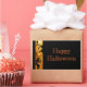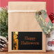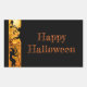 Este pegatina rectangular se muestra con una impresión de Halloween Feliz con calabazas y bruja. Personalizar este artículo o compra como está. com.