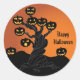Pegatina de forma redonda mostrado en la huella de un árbol de calabaza embrujado de Halloween. Personalizar este artículo o compra tal cual.