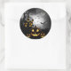 Gran pegatina redondo mostrado con una tira de calabazas de Halloween. Personalizar este artículo o compra como está. com.