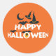 Pegatina redondo mostrado con una estampa festiva feliz de halloween. Personalizar este artículo o compra como está. com.