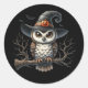 Espeluznante Lechuza Halloween con brujas gorras Pegatinas. Pegatinas temáticos de Halloween. Gatos, murciélagos, calabazas, palillos y calderos. Ideal para invitaciones y estacionarios de Halloween. Halloween diseñando ideas.