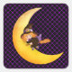 Pegatina cuadrada pequeña con una impresión de brujita de Halloween adorable.