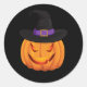 Pegatina redonda mostrada con una temible tira artística de calabaza de Halloween. Personalizar este artículo o compra tal cual. Imagen de stock