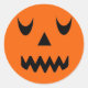 Pequeño pegatina de forma redonda mostrado con una imagen gráfica de una cara de calabaza de Halloween. Personalizar este artículo o compra tal cual.
