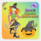 Los Pegatinas de Halloween Rockin Witch Square tienen fondo de degradado azul, verde, amarillo y naranja (personalizable), Rockin verde elegante Witch con pelo naranja largo y brillante vestido con brujas negras brillantes gorra, púrpura, naranja y top verde, falda negra brillante con piernas violetas y verdes, botas negras. La Bruja está tocando guitarra al aire con su escoba. Al lado de la bruja hay una sonriente lámpara en un gorra de brujas grises. También hay una telaraña morada, una araña con ojos de googly y un cráneo morado con huesos cruzados. El texto con estilo morado, verde y naranja es "Ten a Rockin Halloween". ¡Perfecto para las fiestas de Halloween! ¡Coincide con nuestras invitaciones a la bruja Rockin de Halloween! Para personalizar del color de fondo - Borrar la imagen de fondo - Haga clic en el botón Azul "Personalizar", - Haga clic en la "X" junto a la imagen de fondo, luego haga clic en "Editar" y luego en "Fondo", elija su color y haga clic en "Listo". Este diseño se creó utilizando artwork©delightful-doodles.com original (http://delightful-doodles.com/)