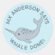Un lindo narval sobre un fondo azul marino claro. El texto dice "¡Mx Anderson dice que la ballena está hecha!" y se puede cambiar por un nombre/mensaje personalizado. Ideal para profesores como recompensa para estudiantes.