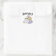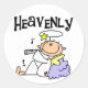 Un ángel de figura de palo descansa contra una nube que toca su flauta y el texto dice "Celestialmente" sobre lindos pegatinas de diseño de ángeles de figuras de palos.