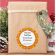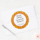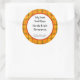 Un patrón de rayas y controles amarillos, naranjas, marrones y verdes sobre los pegatinas de hornear personalizados o enlatar con letras y letras en bloque para su nombre o pequeña empresa, título de la receta y espacio para ingredientes, peso, dirección o más información.
