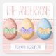 Deséenle a todos una feliz Pascua con este personalizable familiar llamado pegatinas de Pascua. Diseñado con tres huevos de Pascua y puede ser personalizado con cualquier texto que desee. Hace de un gran pegatina para la parte trasera un sobre de Pascua o una etiqueta para un regalo.