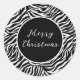 Este pegatina redondo se muestra en una huella de cebra animal con un deseo de Feliz Navidad. Se muestra un tamaño pequeño. Personalizar este artículo o compra tal cual.