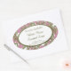 Un personalizado de jabón oval o pegatina de recetas con un guión falso dorado y letras en bloque sobre un elegante patrón floral antiguo de rosas grabados de época en blanco y dorados sobre un polvoriento fondo rosa, lo personalizar para agregar su propio logo, cambiar fuentes y más, incluso guardar su diseño para más adelante.