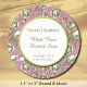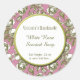 Un jabón personalizado o un pegatina de hornear con un guión falso dorado y letras en bloque sobre un elegante patrón floral antiguo de rosas grabados de época en blanco y dorados sobre un polvoriento fondo rosa.