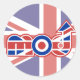Diseño de logotipo retro con un blanco modo y una toma de unión en forma de las letras MOD en blanco y azul