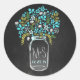 hermosos stickers de boda en pizarra - focas con flores turquesas, corazones de amor azul claro, hojas y encantador diseño rústico de tarro de albañil.