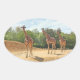 pegatinas ovales de personalizable con la foto de tres jirafas caminando en su hábitat natural.