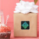 Un conjunto de pegatinas cuadrados de un diseño de nudo celta azul-verde con borde sobre un fondo negro.