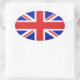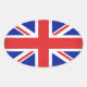 Este pegatina de forma ovalada se muestra en un diseño de impresión de Bandera Británica. Personalizar este artículo o compra tal cual.
