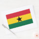 Pegatinas Rectangle con bandera de la República de Ghana; bandera de franjas horizontales rojas, amarillas y verdes y estrella negra en el centro