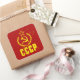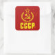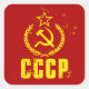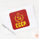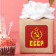 Simple bandera comunista con el símbolo del martillo y la hoz rodeados por la corona laurel y en la parte superior una estrella y en la parte inferior la escritura CCCP hecha en un estilo retro, vintage y usado.