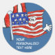 Haz algunas olas con este diseño de bandera norteamericana personalizado. Cree sus propios pegatinas personalizados o etiquetas de personalizado de bandera estadounidense. La imagen de franjas de fondo se puede eliminar y puede escribir su propio texto personalizado. Para cambiar más sobre el diseño, como el color de fondo azul, o el tipo de letra del texto, o el color, o el tamaño, pulse el botón "personalizar" y personalizar completamente a su manera. ¡Diviértete! Perfecto para el 4 de julio, el Día del Presidente o las elecciones, o el Día de la Bandera... Use la marca ondulante para su promoción especial.