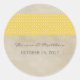Elegantes y modas Pegatinas de la Boda Rustic Damask, con una apariencia de papel texturado vintage y un floreciente borde de patrón de damasco en amarillo. Fácil de personalizar, simplemente añada los detalles de su boda. Haga clic en "Personalizar" para encontrar más opciones de personalización.