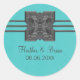 Pegatinas de bodas de la frontera de medallón regales y elegantes con un medallón metálico de arte digital y un borde de tres rayas sobre un fondo turquesa. Estos stickers de bodas audaces y elegantes son perfectos para un boda igualmente audaz y elegante y son perfectos para favores o sellos para sobres. Fácil de personalizar, simplemente agregue los detalles de su boda en los campos de texto proporcionados. Haga clic en "Personalizar" para encontrar opciones de personalización adicionales como cambiar fuentes o tamaño de texto.