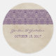 Sencillas y elegantes pegatinas rusticas de bodas de encaje con un fondo de papel texturizado vintage y un borde de encaje dulce y delgado en morado. Fácil de personalizar, simplemente añada los detalles de su boda. Haga clic en "Personalizar" para encontrar más opciones de personalización.