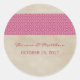 Elegantes y modas Pegatinas de la Boda Rustica Damask con un aspecto de papel texturado vintage y un floreciente borde de patrón de damasco en magenta. Fácil de personalizar, simplemente añada los detalles de su boda. Haga clic en "Personalizar" para encontrar más opciones de personalización.