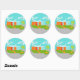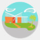 Estos Pegatinas de la Casa Personalizado Moderna de Mediosiglo le harán sentirse como en casa. El diseño artístico minimalista de los años 60 se compone de una elegante casa de piedra naranja y de cristal acuático sobre un frondoso césped verde en forma de boomerang. El césped forma un oasis en medio de su entorno gris y de hormigón. Una palmera verde se balancea en la brisa. Cuatro escalones de piedras naranjas conducen a la puerta trasera, roja y retro, con tres cristaleras rectangulares. A la izquierda de la puerta, una maceta de flores turquesa acoge una planta tropical verde. La casa tiene un techo blanco inclinado en forma de V que apunta hacia dos nubes blancas con forma de riñón. El cielo es una sombra positiva de agua. ¡Nadie querrá tirar piedras de esta moderna casa de cristal! ¡Compra este producto kitschy de la edad espacial y sé el gato más genial de tu bloque!