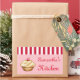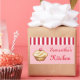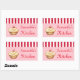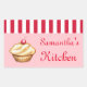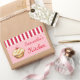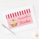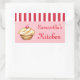 Un bizcocho y rayas decoran este bonito pegatina de la cocina de panadería. Personalice estos pegatinas cambiando el texto para adaptarlo a sus necesidades. Usa estos lindos pegatinas de quequitos rosados para una panadería, una cocina, productos horneados, dulces, regalos, favores de fiesta, bolsas de regalo, El día de San Valentín, negocios, casa, etc... El diseño es de arte original.