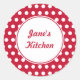 Un brillante patrón de puntos polka rojo y blanco decora estos pegatinas divertidos. Personalizar a estos pegatinas para que se adapten a sus necesidades. Utilice este elegante pegatina para una panadería, negocios, cocina, recipientes de comida, artesanías, productos, empaque, fiesta de cumpleaños, ducha de novia, etc...El diseño es de arte original.