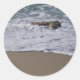 A orillas del mar, con una roca y un surf que se unen a la arena